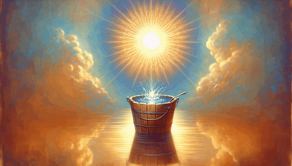 This restless search continues until it arrives at a profound, deeper insight: “I am the Sun. I do not need to go into buckets to be comfortable or complete. I should simply stay what I am.” This realization liberates it from the endless cycle of seeking external solutions.