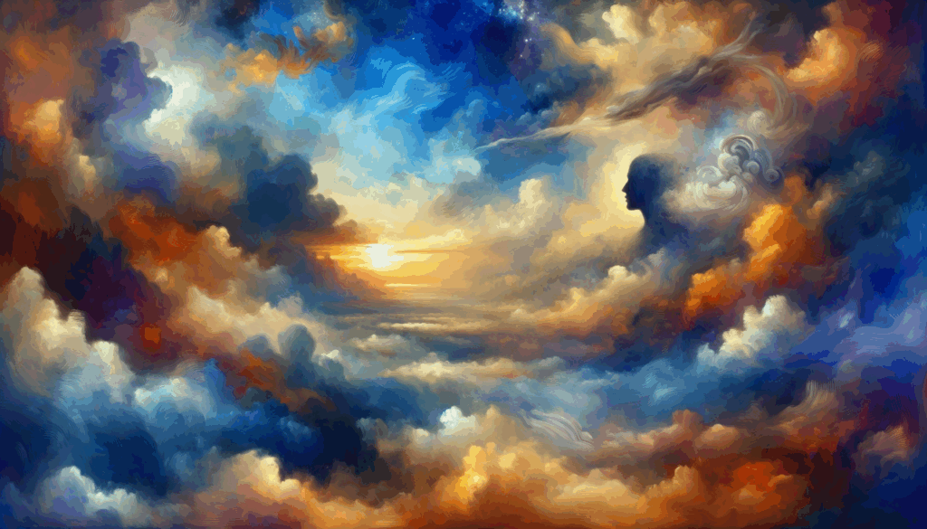 The sky remains untouched while clouds move freely. The sky doesn’t become dark when clouds are dark, nor does it grow proud when clouds are bright. In the same way, the Self remains untouched, even as actions continue.